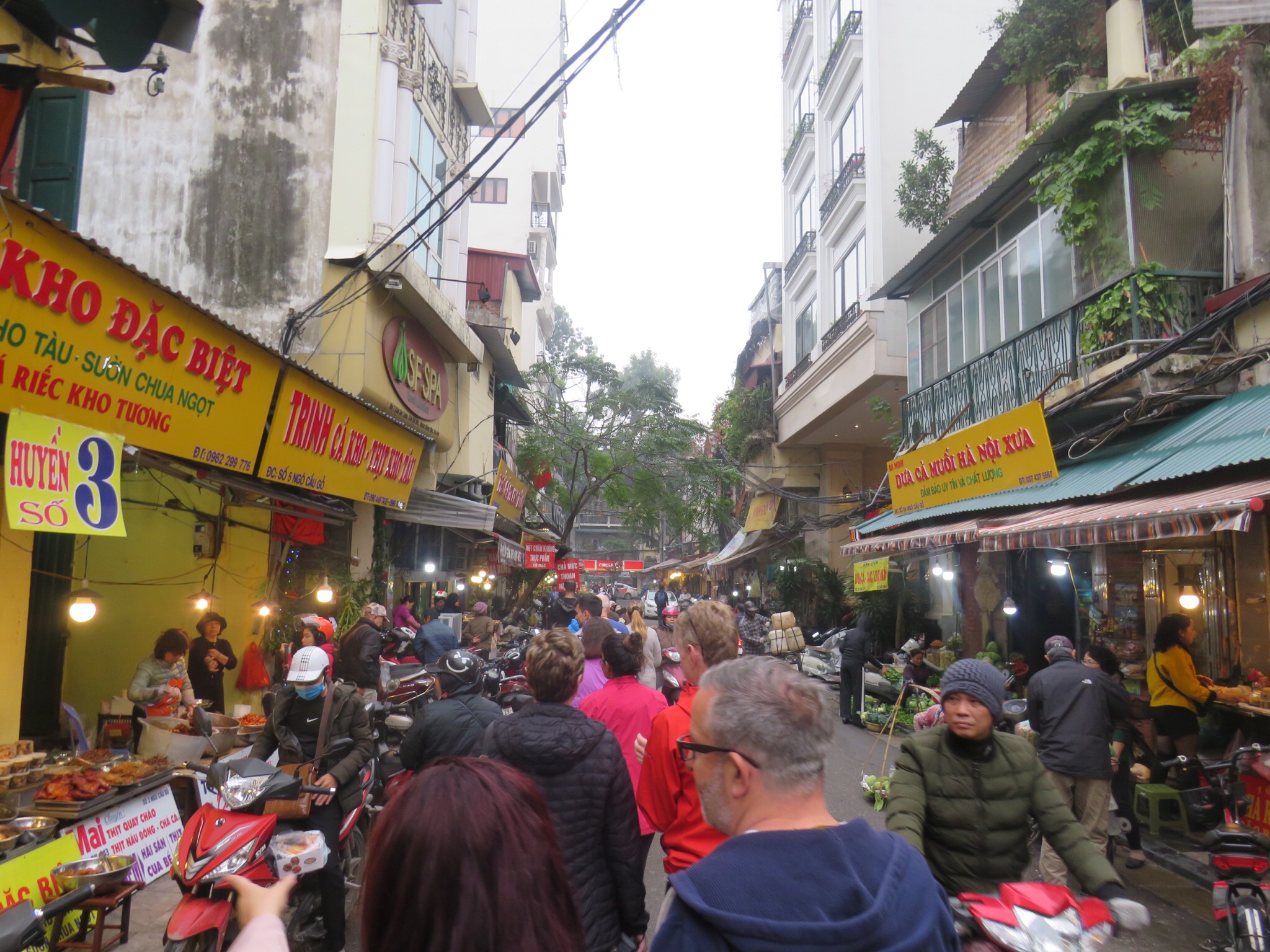 Walking around the Old Town area of Hanoi in the afternoon confirmed my thoughts on how much it reminded me of some of the quieter Bombay streets. Shops piled up their wares on the pavement, hung up in string lengths, ladies sat on the pavement selling vegetables in great wicker baskets, so much like Breach Candy (for those who know the area!)
