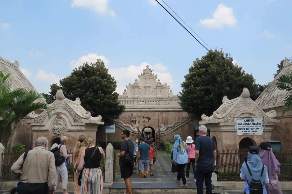 We were taken to the Kraton (Sultan’s Palace) and Taman Sari (the Water Castle) an 18th century portuguese complex- where royalty used to bathe in the old days. The basic and original layout of the main building of The Kraton began its construction during the reign of Sultan Hamengku Buwono I, in 1755 – 1756. It is still the Sultan’s residence and all the state functions take place there. The caretakers of the royal household still wear traditional costume and all the female guides had their hair styled in the traditional way.