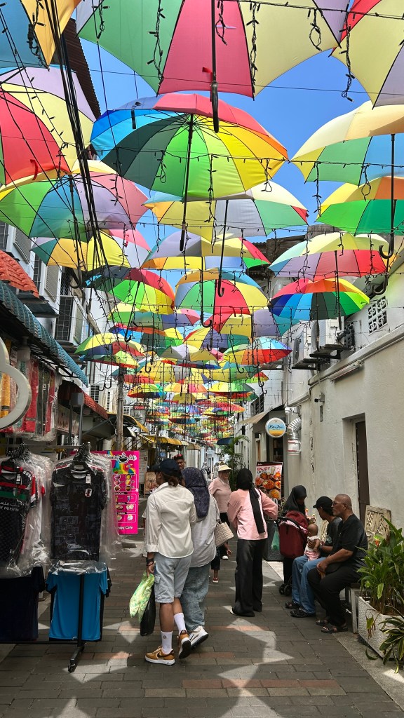 The street has become famous for its street art, above, the most famous one is ‘Children on a Bicycle’ by Ernest Zacharevic, Malaysia’s ‘Banksy’. The area has a cool vibe, obviously very touristy but fun to wander around.