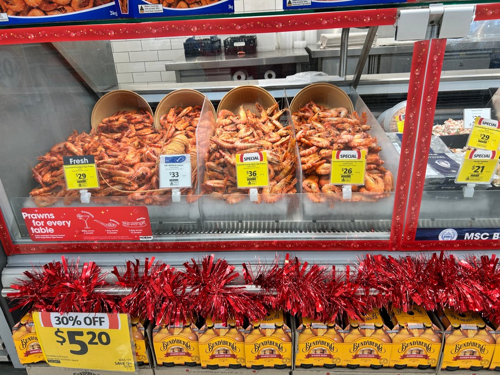 I also wandered around the shops to see the Christmas preparations, the shops were packed, I don’t know what I was surprised at the loaded trolley’s and the lines for a photo with Santa really! There were also tables where you could get your presents wrapped for a donation to Rotary Club or the Salvation Army etc which I thought was a nice thing thing. Seafood is obviously a favourite Christmas food in Australia, and not just another shrimp on the BBQ, the range was vast! Of course I took pictures……