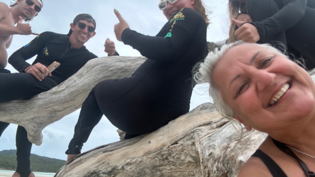 So we had a couple of snorkel sessions over the day which were spectacular, the rain came in during the evening but it was ok. We were warned that we would be woken at 5am the next day as there were a couple of good snorkelling sites that we needed to get to before getting back to Airlie Beach. Carina who was another solo traveller thought they were joking… oh no! The engines came on at 5am and after a hot and uncomfortable night, we got up! I met this lovely group of 4 that were out local and then from UK too, I complained that I was not able to sleep, and one of them Pete, said that he heard me snoring from sleeping up on deck!!!! Yes, I know I snore – can’t do much about it but we had a good laugh about it! Apparently my room number from now on is 104, as in 10snore…..!